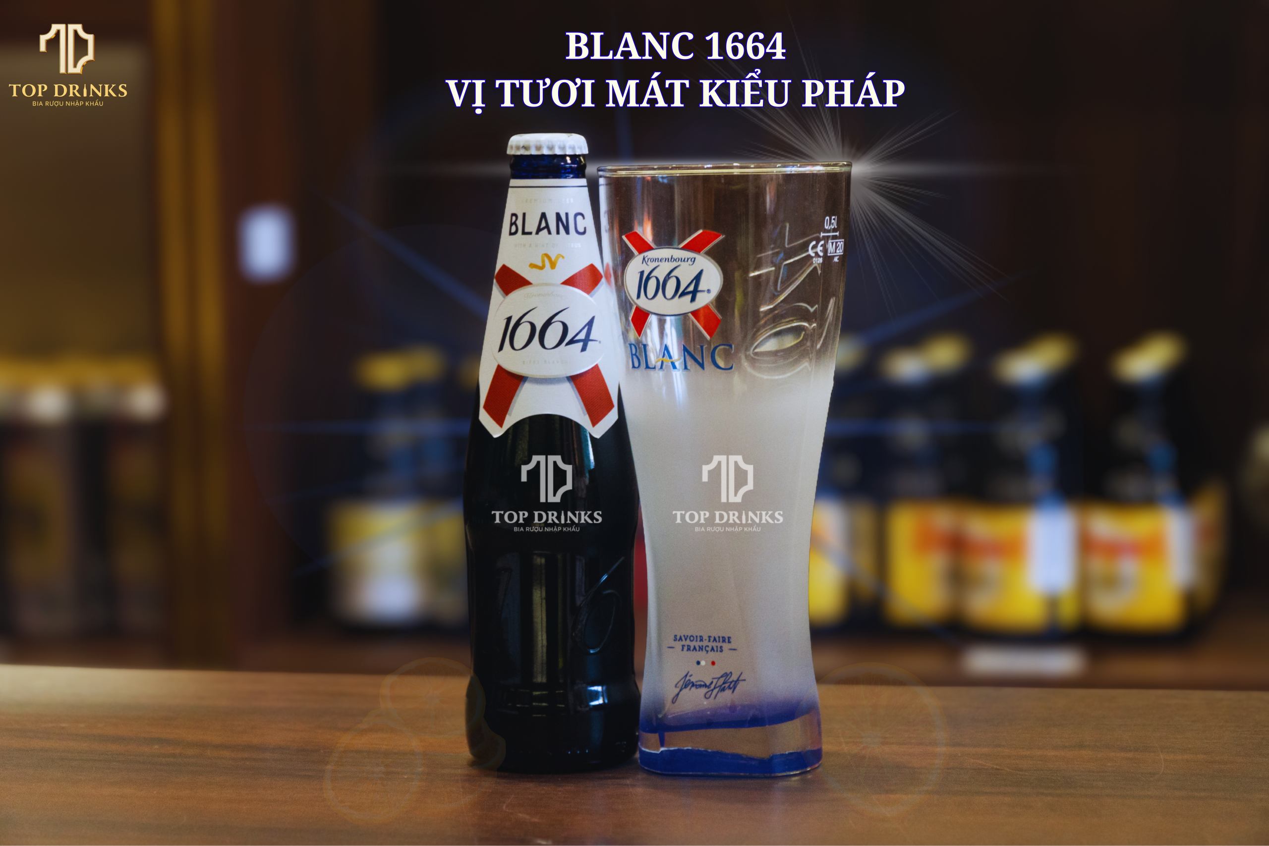 Bia Kronenbourg 1664 Blanc: Là dòng bia cao cấp được ủ từ lúa mì, 1664 Blanc mang sắc sánh vàng đặc trưng, cùng nhiều tầng hương vị tươi mát và sảng khoái – hiện thân hoàn hảo cho chuẩn mực hương vị Pháp. Hương vị độc đáo của bia 1664 Blanc đến từ sự hòa quyện tinh tế của vị trái cây cân bằng, điểm thêm hương cam quýt và vị cay thanh nhẹ. THÔNG TIN SẢN PHẨM Hương vị đặc trưng: – Lên men tự nhiên từ lúa mì, si-rô đường, hoa bia và các gia vị (vỏ cam, rau mùi). – 100% tự nhiên, không chất bảo quản. – Mùi vị và hương thơm đặc trưng từ lúa mạch. – Sản phẩm đóng chai tiện lợi, nhiều lựa chọn. ***Không dành cho người dưới 18 tuổi ***Không dùng thức uống này khi tham gia giao thông Thành phần: – Nước, đại mạch, lúa mì, siro đường, hoa bia, hương caramen tự nhiên, hương vỏ cam tự nhiên, hương mùi tây tự nhiên Gợi ý cách dùng: – Hoàn hảo khi kết hợp với phô mai, hải sản, và hoa quả – Thích hợp sử dụng trong các dịp lễ hội, những sự kiện đặc biệt, hoặc chia sẻ thời gian quý báu bên bạn bè. Quy cách đóng gói: – Thùng 24 chai x 330ml Hướng dẫn bảo quản: – Bảo quản nơi khô ráo và thoáng mát Xuất xứ: Pháp Nơi sản xuất: Việt Nam NSX: Xem trên bao bì HSD: 12 tháng kể từ NSX THÔNG TIN THƯƠNG HIỆU Kronenbourg nhãn hiệu bia biểu tượng từ Pháp với truyền thống hơn 300 năm (từ năm 1664). Đây chắc chắn là cái tên khá quen thuộc đối với những ai đã lỡ trót yêu hương vị tươi mới nhưng cũng đậm chất cổ điển của Pháp. Là một trong những nhà sản xuất bia khá nổi danh, ngày nay cái tên Kronenbourg 1664 đã nhanh chóng lan rộng khắp trên thế giới. Trải qua hàng chục năm, những chai 1664 Blanc đã trở nên khá quen thuộc với những người yêu bia. Carlsberg là một trong những công ty đa quốc gia Đan Mạch đầu tiên vào Việt Nam và đầu tư lần đầu vào năm 1993. Trong 20 năm đầu tiên, Carlsberg điều hành hoạt động tại Việt Nam thông qua Carlsberg Đông Dương. Carlsberg mang đến cho người tiêu dùng Việt Nam sản phẩm bia chất lượng, đạt chuẩn quốc tế với nhiều phân khúc đa dạng phù hợp với từng đối tượng. Chắc chắn trong vài năm trở lại Carlsberg sẽ trở thành cái tên đi đầu trong thị trường bia Việt Nam.