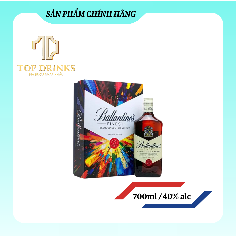 Ballantine’s là thương hiệu Blended Scotch Whisky danh tiếng của Scotland, được yêu thích trên toàn thế giới nhờ hương vị hài hòa, êm mượt và dễ tiếp cận. Với công thức pha trộn từ nhiều loại whisky mạch nha và whisky ngũ cốc ủ trong thùng gỗ sồi, Ballantine’s mang đến trải nghiệm tròn vị, phù hợp cho cả người mới lẫn người sành rượu.